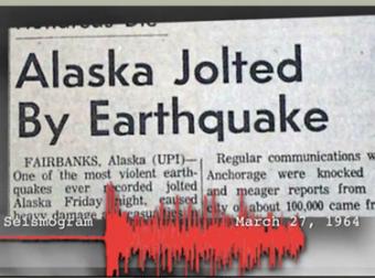 The 1964 Great Alaska Earthquake occurred on Good Friday, March 27th. Liquefaction in and around Anchorage tore the land apart. At magnitude 9.2, it was the second largest quake ever recorded by seismometers.