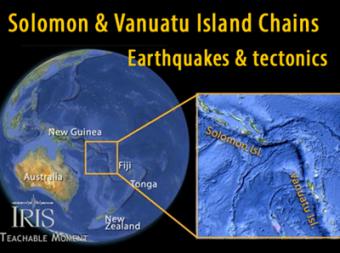 The Solomon and Vanuatu Islands are subduction-related features caused by the subduction of the Indo-Australian Plate beneath the greater Pacific Plate. It is a seismically active area of frequent large earthquakes.