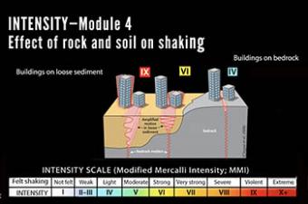 Earthquake intensity (what is felt during an earthquake at any given location) is often mistaken for earthquake magnitude (the instrumentally measured size of that earthquake). This animation describes the main factors that contribute to differing intensities using examples of earthquakes. Produced in collaboration with the U.S. Geological Survey.