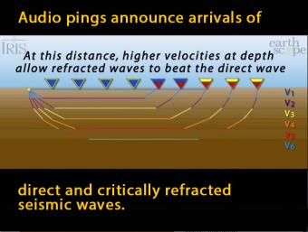 Man-made sound waves produced by airguns travel through the earth, reflect off different rock layers, then are recorded by geophones being towed behind the boat.