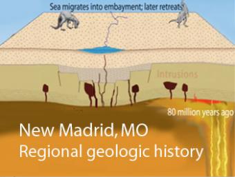 Volcanoes, dinosaurs & inland sea around New Madrid? Hmm. There is an interesting geologic story told in the rocks of the New Madrid seismic zone. This animation takes each segment of geology and spins a scenario in cross section to see how the landscape has changed over its 500 million year history. No audio.
