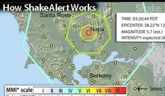 ShakeAlert (www.shakealert.org) is an experimental earthquake early warning system (EEW) being tested in the seismically vulnerable West Coast of the United States. This animation shows how ShakeAlert worked for the Napa earthquake, and how it could work for a large M7.8 hypothetical earthquake in Southern California.