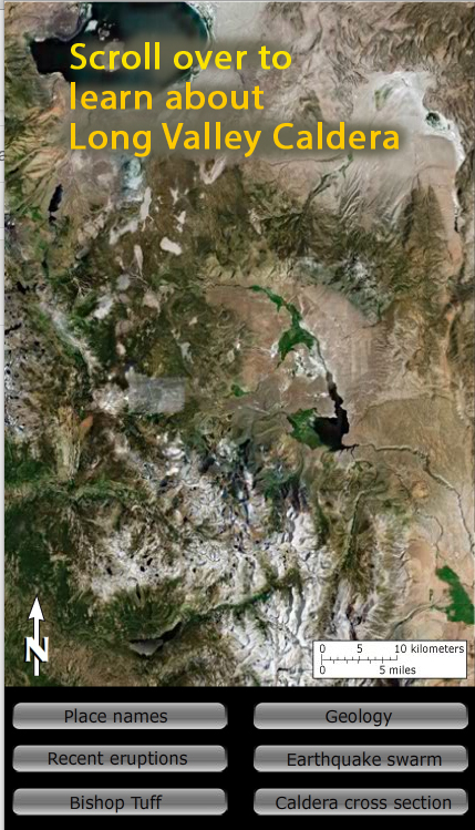 Long Valley Caldera area has had a history of eruptions and earthquake swarms. Learn more with this interactive map that reveals geology, eruptions, earthquakes, and more.