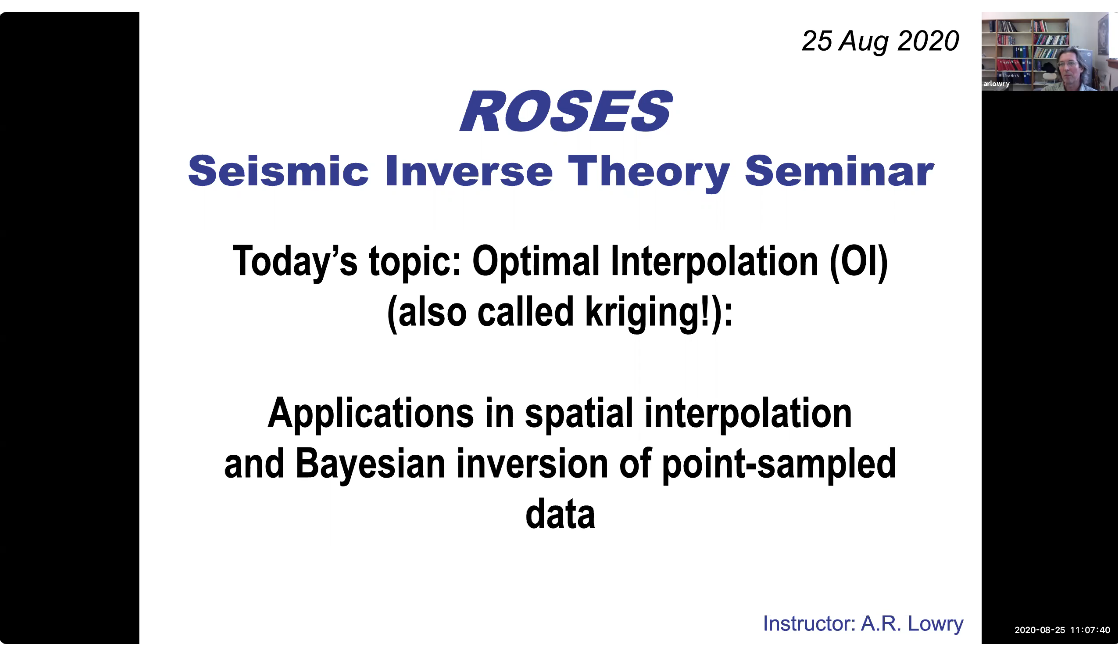 This is the tenth unit in the Remote Online Sessions for Emerging Seismologists (ROSES), an online course for graduate students. ROSES is hosted by the American Geophysical Union (AGU) Seismology Section. This unit on Optimal Interpolation is provided by Tony Lowry, Utah State University.