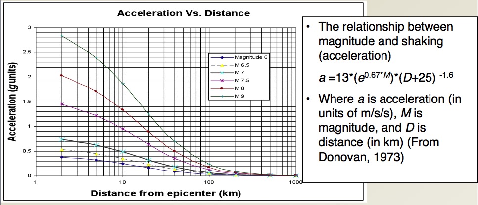 In this activity, students explore the relationship between an earthquake's magnitude and intensity. Students calculate the energy released during a weight drop (magnitude) and use an accelerometer (iPhone, QCN, or other) to investigate what happens to this energy as the source is moved further and further from the sensor (intensity). Students next examine USGS ShakeMaps to explore other factors besides an event's size and the distance from the source to the receiver that can effect the intensity (e.g. geologic structures, etc).