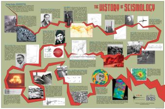 Depicting original sketches, photographs and colorful new imagery, this poster captures the major milestones of the development in the field of seismology. Seismology's rich history begins with Robert Hooke's 1676 paper titled "True Theory of Elasticity or Springness" and continues through the 1830 discovery of P and S waves, the 1930's discovery of the inner core by Inge Lehman, and includes recent innovations such as shake maps, real-time collections of maps depicting shaking intensity within seconds of an earthquake.