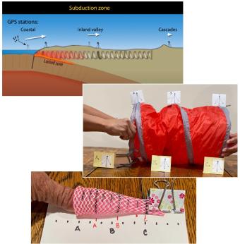 Go to ResourceThis set of hands-on activities helps students investigate ground deformation and earthquake hazards in the Pacific Northwest using physical models, real-world data, and map analysis. A brief demonstration with a compression spring illustrates how the subduction of the Juan de Fuca plate beneath the North American plate causes varying motion across the region. In longer activities, students measure compression, analyze GPS vector maps, and identify seismic hazard zones. By interpreting real-world data, students develop a deeper understanding of tectonic forces and connect these concepts to earthquake preparedness strategies.